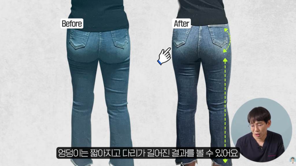 - 탄력 있는 뒷모습: 엉덩이가 위로 올라붙으면서 전체적인 실루엣이 건강해 보이고, 레깅스나 일상복을 입었을 때 처음 꿈꿨던 탄력 있는 모습을 되찾게 됩니다.